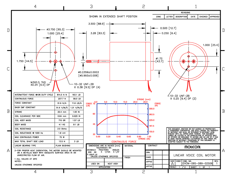 Force: 58.0 lb (257.7 N), Stroke: 1.00 in (25.4 mm)