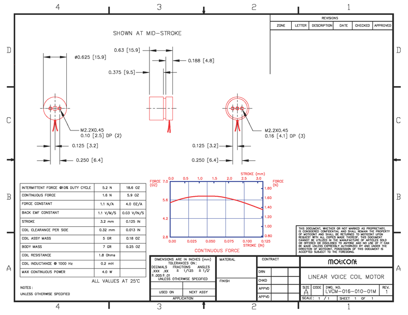 0.125 in. (3.2 mm) stroke. The LVCM-016-010-01VAC Linear Actuator is a miniature brushless DC servo actuators which has high acceleration/deceleration and low inertia, clean with zero cogging, and highly efficient,ceutical applications.