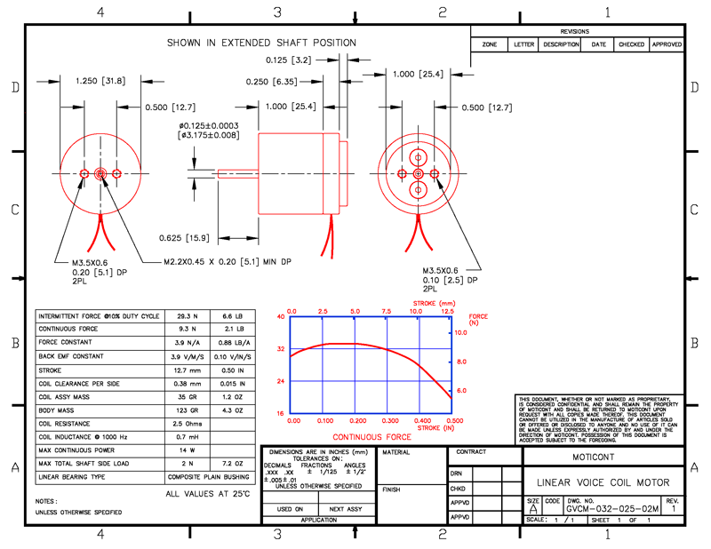 Linear Voice Coil Servo Motor, the 12.7 mm (0.500 in.) stroke