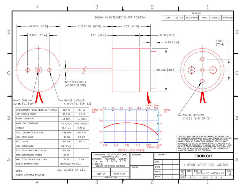Force: 5.7 lb (25.5 N), Stroke: 0.75 in (19.1 mm)