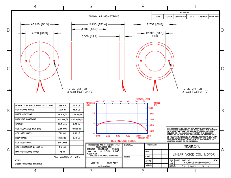 Force: 16.3 lb (72.4 N), Stroke: 2.50 in (63.5 mm), Aperture: 50.8 mm